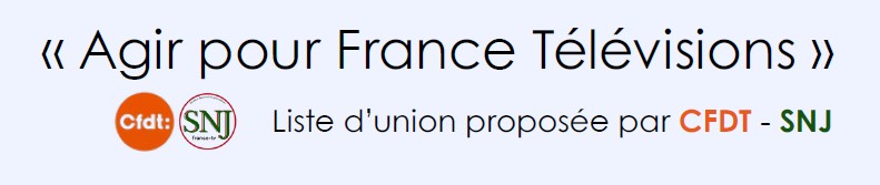 Agir pour France Télévisions : notre liste commune CFDT-SNJ pour l’élection du Conseil administratif du groupe 2026-2030AccueilCommuniqués nationaux Lire ci-dessous notre profession de foi : Profession de foi CA 2026-2030 Liste CFDT-SNJ Agir pour FTVTélécharger Communiqués nationaux Navigation de l’article Article précédent