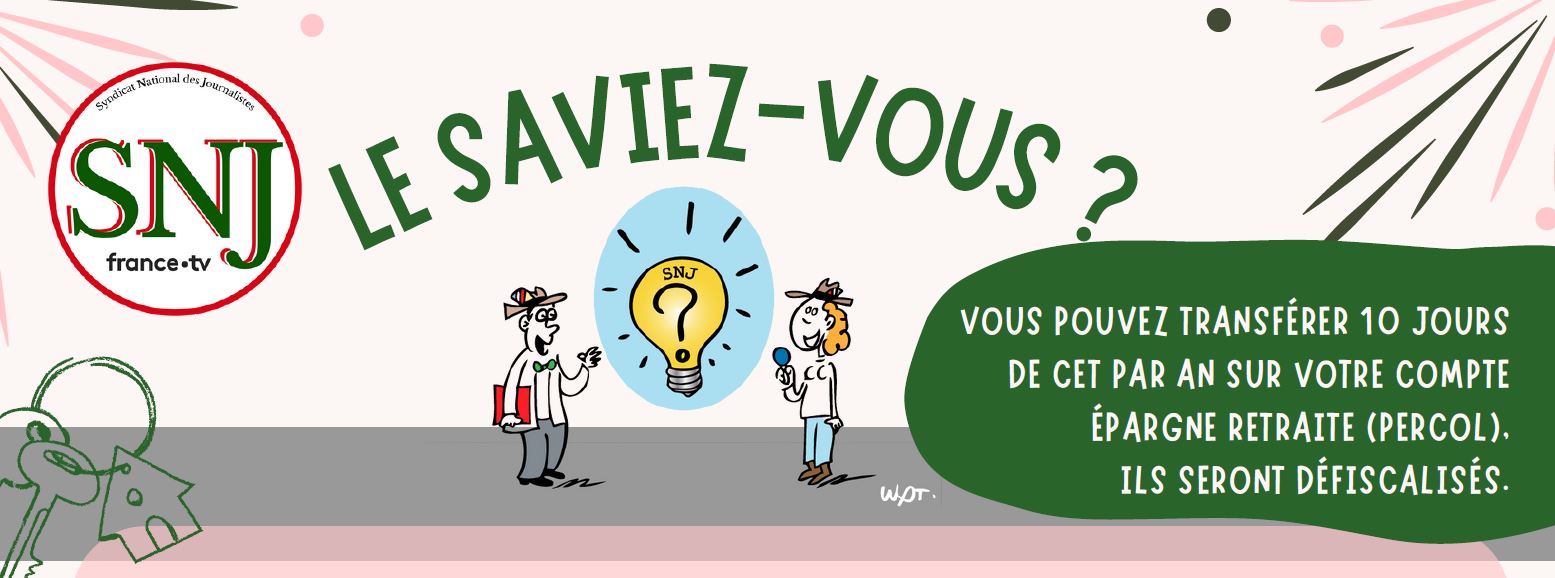 Vous pouvez transférer 10 jours de CET par an sur votre compte épargne retraite (Percol), ils seront défiscalisés.